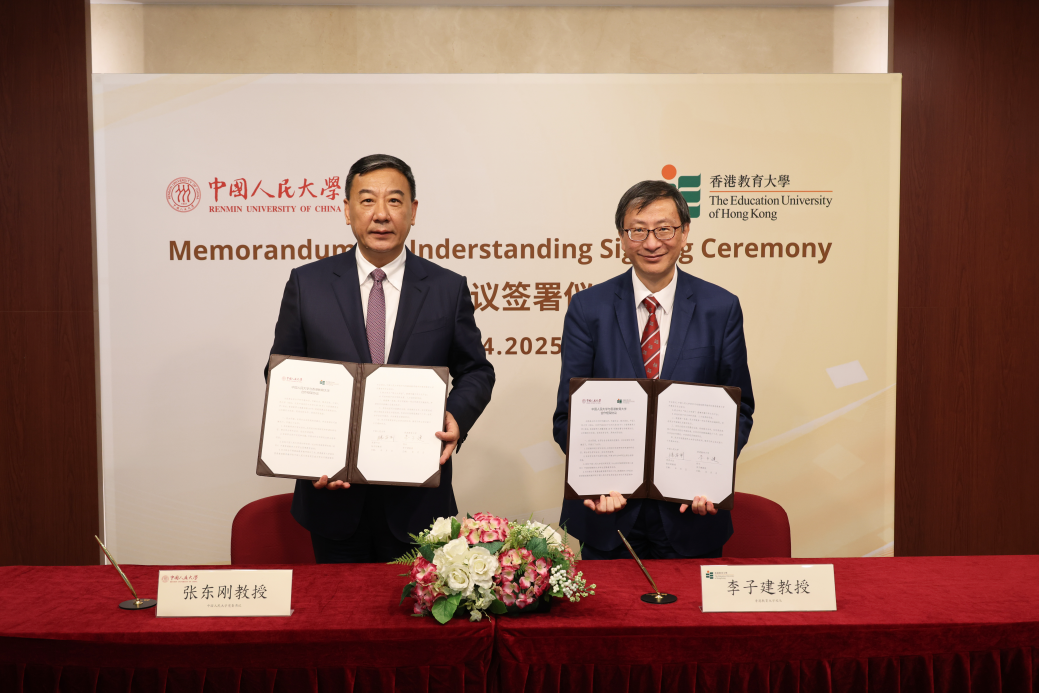 张东刚和香港教育大学校长李子建分别代表两校签署合作框架协议。根据协议,双方将互派教师进行学术访问,开始学生联合培养和学生交流交换,依托人大深圳研究院开展香港教育大学学生国情教育活动,联合开展基础教育教师培训工作以及联合举办“陕公大学堂”,搭建传播中华文化平台。
