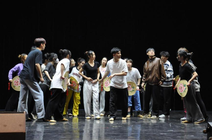 舞剧《运》的演员们没有一个人是艺术特长生,也没有一个艺术类专业的学生,对于他们来说,参与舞剧的演出既是机遇,也是巨大的挑战。每天课余时间,舞蹈教室、排练厅、剧院都被《运》团队成员们“占领”,从基本功的训练,到舞蹈动作的反复打磨,每一个细节都力求完美。在练习一段表现漕船航行的舞蹈时,为了展现出船在水中的颠簸和船工们奋力划船的场景,男生不断地调整动作的幅度和力度。“这个动作要更有力,想象你们就是在与风浪搏斗!”老师在一旁大声指导着。大家一次次重复,摔倒了又爬起来,膝盖、手肘上满是淤青,但没有一个人喊累喊苦。