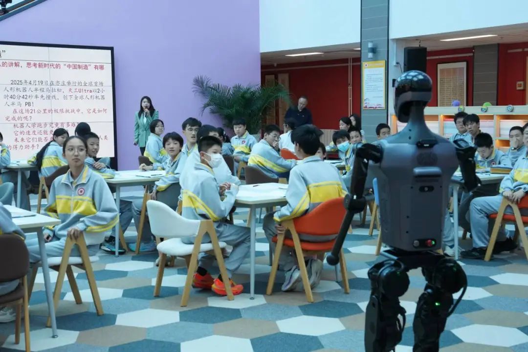 “亦马奖牌中有哪些奥秘?赛事冠军天工机器人名字是怎么来的?”近日,以“亦马当先,智赢未来”为主题的“大思政课”教研活动在北京市第二中学经开区学校举办。该活动作为经开区积极构建“区校家”协同联动的思政育人“大格局”的一次生动实践,特邀北京亦庄半程马拉松暨人形机器人半程马拉松赛事冠军“天工Ultra”机器人团队走进校园。