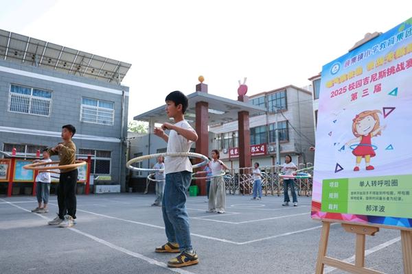 另一边,呼啦圈挑战赛中,五年级女生刘佳月与两名同学激战60分钟,谁也不愿意先停下,最终共享第一的殊荣。“没想到我能坚持这么久!”刘佳月气喘吁吁却满脸自豪,“老师说这是对耐力和专注力的双重考验。”