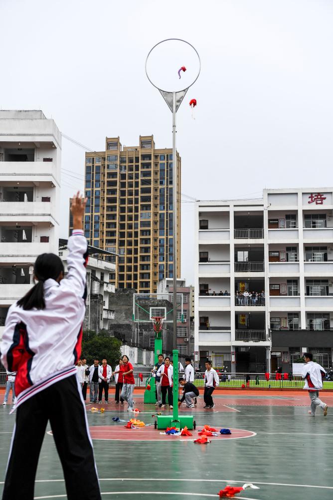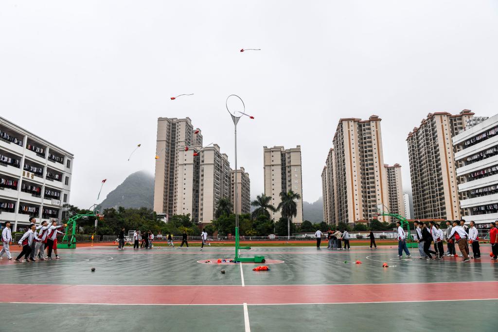 ↑在广西崇左大新县民族高级中学,学生们在练习抛绣球