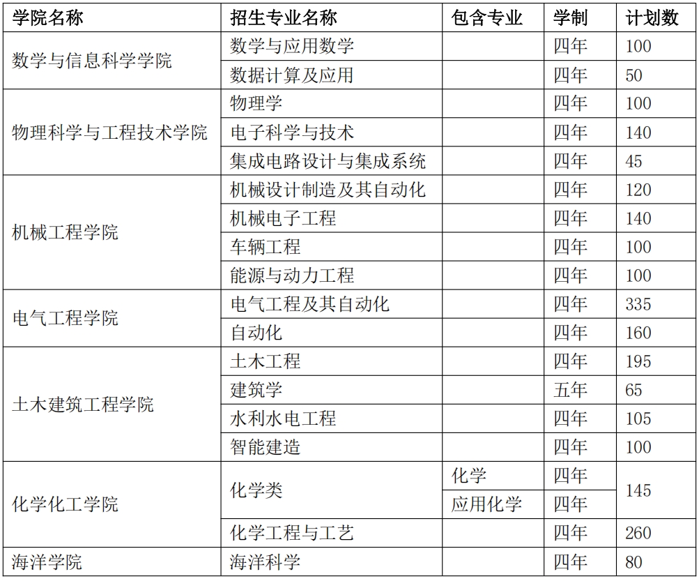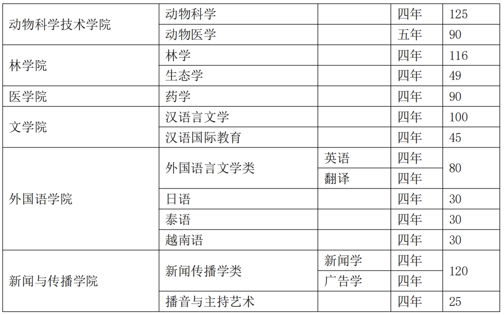 2.广西大学本科招生计划表