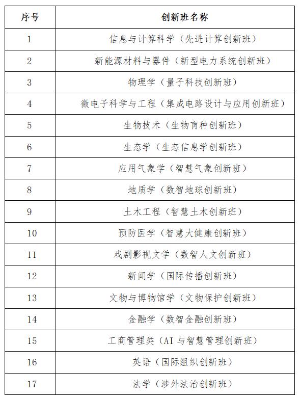 在往年理论与应用力学(基地班)、经济学(基地班)、草业科学(基地班)通过高考成绩直接招生的基础上,新增数学与应用数学(基地班)通过高考直招。