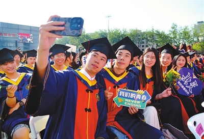 6月20日,毕业生在北京交通大学2025年毕业典礼暨学位授予仪式现场拍照留念。新华社记者 任超 摄