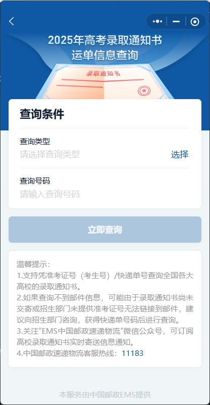 考生可以通过国务院客户端小程序,进行高考录取通知书运单信息查询。
