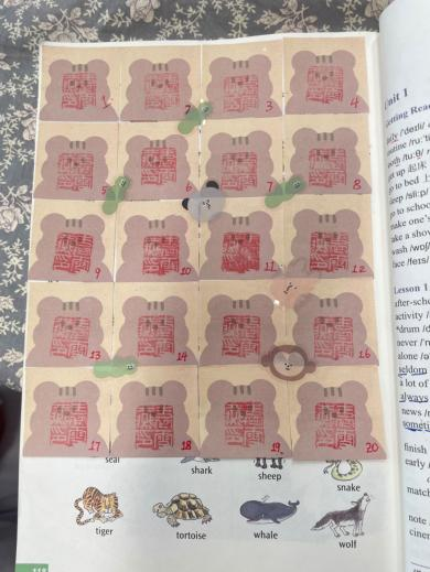 兴趣是最好的老师,如何将“小蜗牛”任务驱动的学习状态转向兴趣驱动呢?袁雪燕想起了内尔·诺丁斯的关怀理论中提到的“全情全身心的投入”,即关怀者要设身处地的去考量被关怀者的境遇和内心状态,找出被关怀者的所需。于是她用便利贴给“小蜗牛”留了字条,上面写着,不是每一朵花都要成为一朵花,你可以是绿植,你可以是竹子。自此,这对师生约定每日五分钟的英语共读。完成了,就能得到一枚小熊印章贴纸。日复一日的共读,让书页里贴纸渐密,英语课本也成了“小蜗牛”的勇气勋章。从嗫嚅跟读到自信发音,那一张张便利贴,终于叠成了学生跨越自我的阶梯。