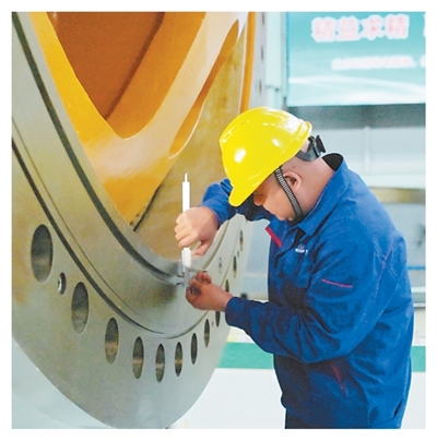 水轮机转轮安装现场,哈尔滨职业技术大学毕业生张安贤负责操作大型10米立车。“这里早晚温差大,对转轮加工的精度影响很大。通过使用激光跟踪仪、实施全天多时段多次测量等,我们调试的水轮机转轮成功通过验收。”张安贤自豪地说。