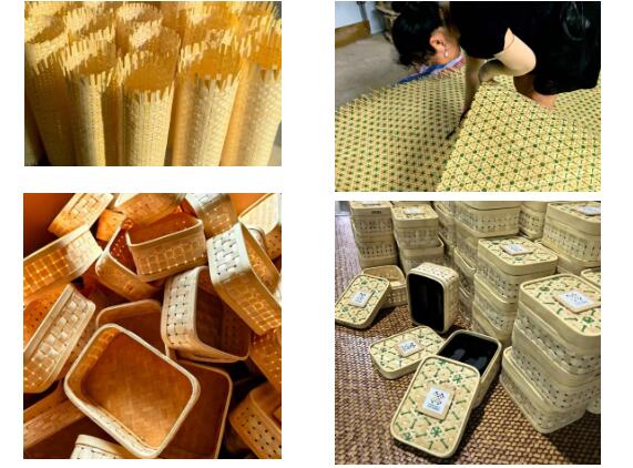制作过程中,团队老师们对每一个细节都追求极致。从选材开始,每一根竹篾都经过精心挑选,确保粗细均匀、质地坚韧。在编织环节,对于竹篾的宽度、编织顺序、穿花方法等均制定了严格的标准,力求分毫不差。陈云华院长说:“正是这种对技艺的执着追求和对品质的严苛把控,才使得每一个竹编奖牌盒都成为了精美的艺术品。”面对要在短短一个月内完成2000多个竹编奖牌盒的艰巨任务,学院迅速组织师生及青神当地的竹编能手,组建了一支高效精锐的制作团队。采用公司+学院+农户的模式,充分发挥各方优势,形成强大合力。在制作现场,团队成员分工明确、密切配合,每一个环节都紧张有序地进行着。