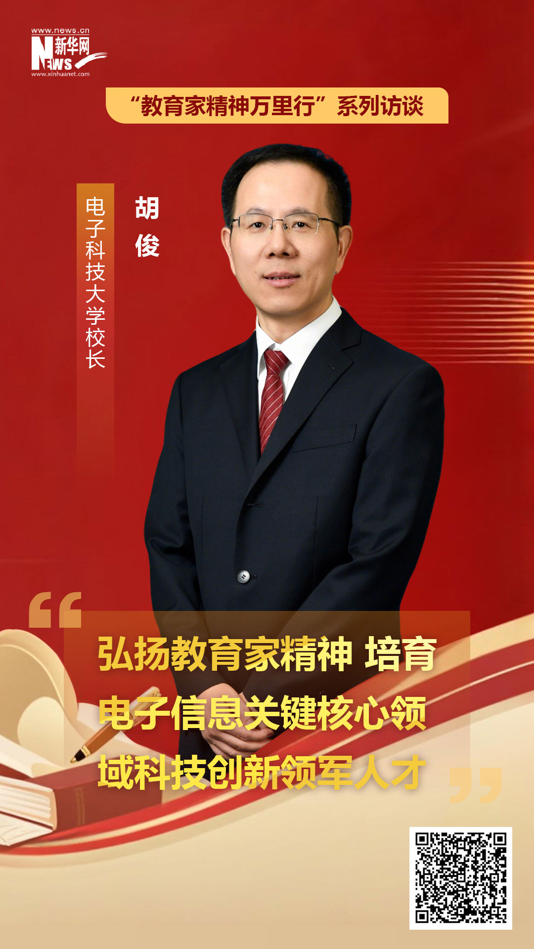 近日,电子科技大学校长胡俊在接受新华网专访时,围绕实施教育家精神铸魂强师行动、推动科技自主创新与人才自主培养良性互动及数字化赋能教师队伍建设等方面阐述了学校的思考与实践,并就面向2035教育强国目标如何发挥教育家精神的引领作用分享了个人见解。