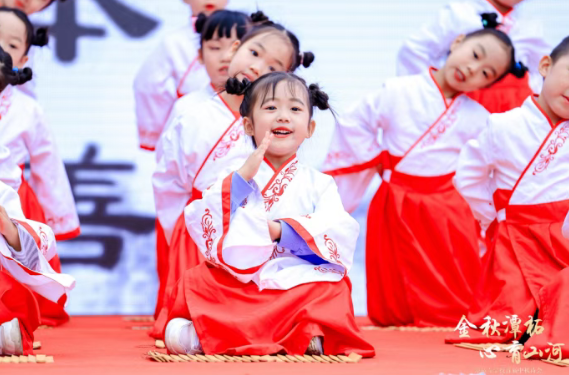“诗韵·金秋寻踪”篇章以“文化认同”为思政内核,以“传统文化启蒙和传承”为思政落点,聚焦中秋传统文化和诗词经典的诵读与吟唱,多个学段小朋友们带来的《三字经》诵读、古诗串烧、舞蹈、歌曲等,让现场观众在诗词韵律中感受中华优秀传统文化的独特魅力。