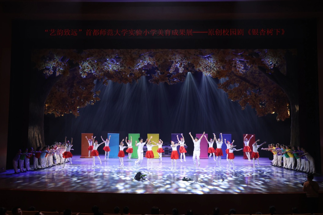 28日,首都师范大学实验小学原创校园剧《银杏树下》在民族剧院首演。该剧以学校建校时校园栽种的银杏树为象征,通过180余名师生家长共同演绎,再现了建校70年来教育理念的演进与升华,展现了思政教育从情感浸润到自觉担当的完整链条。