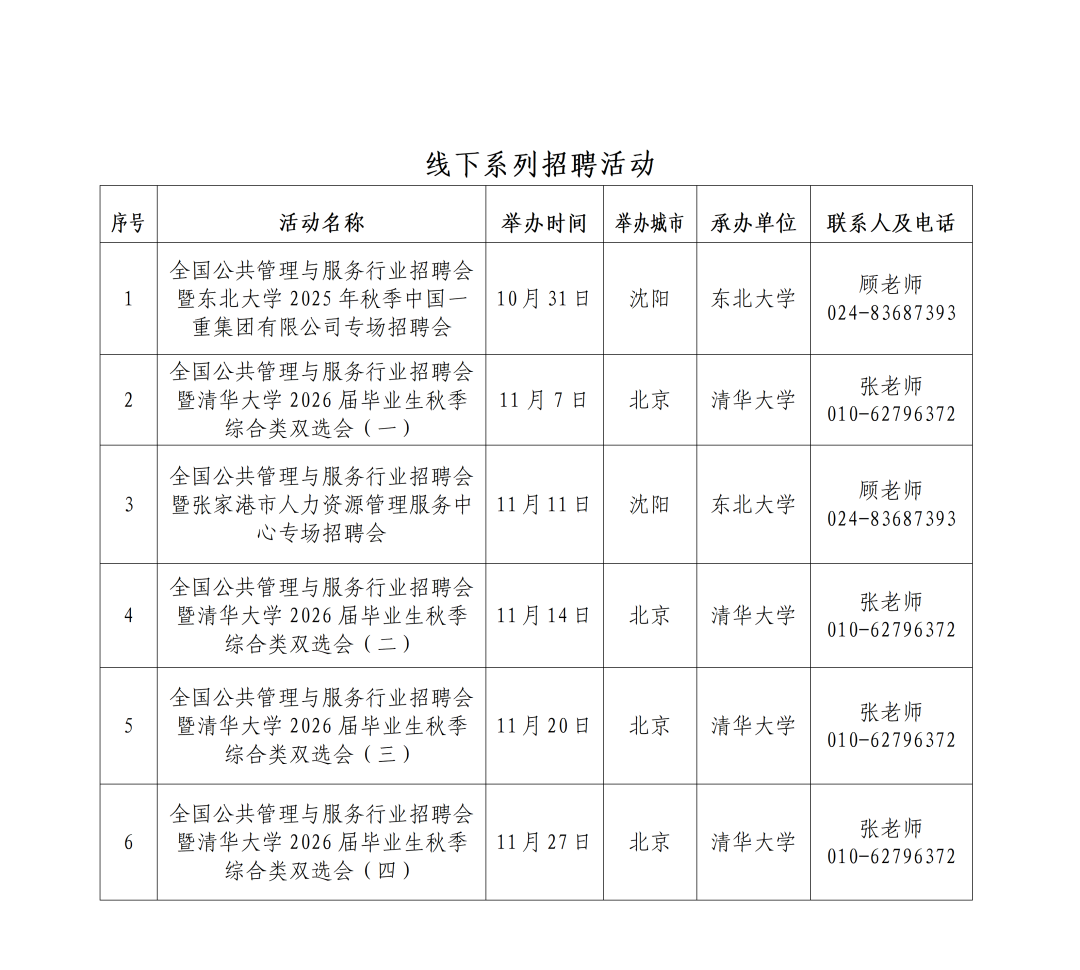 全国公共管理与服务行业面向2026届高校毕业生秋季招聘活动