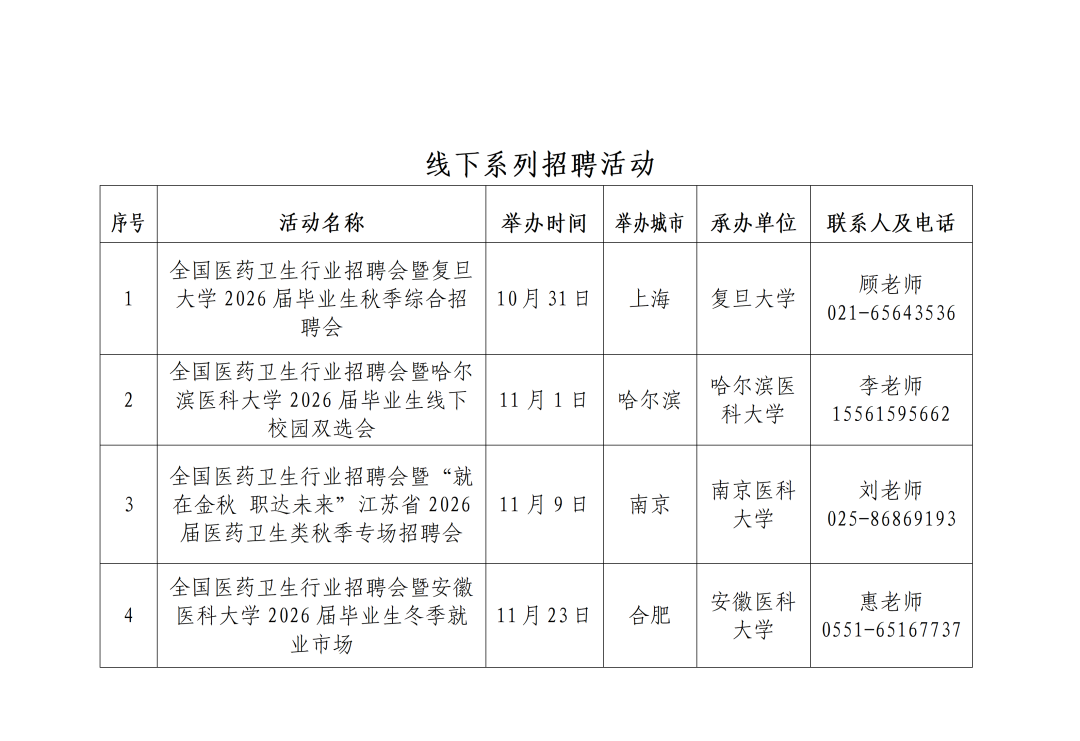 全国医药卫生行业面向2026届高校毕业生秋季招聘活动