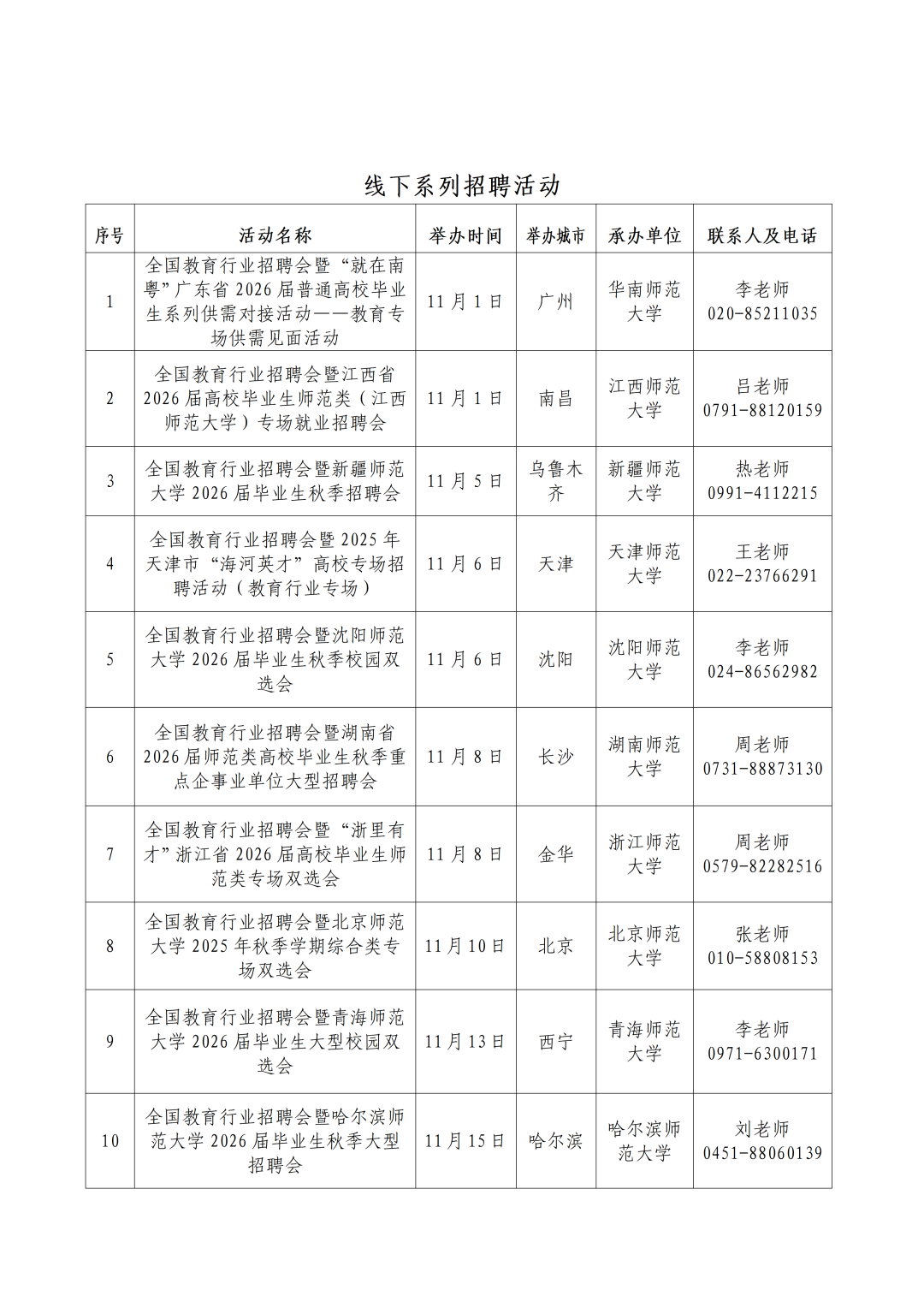 全国教育行业面向2026届高校毕业生秋季招聘活动