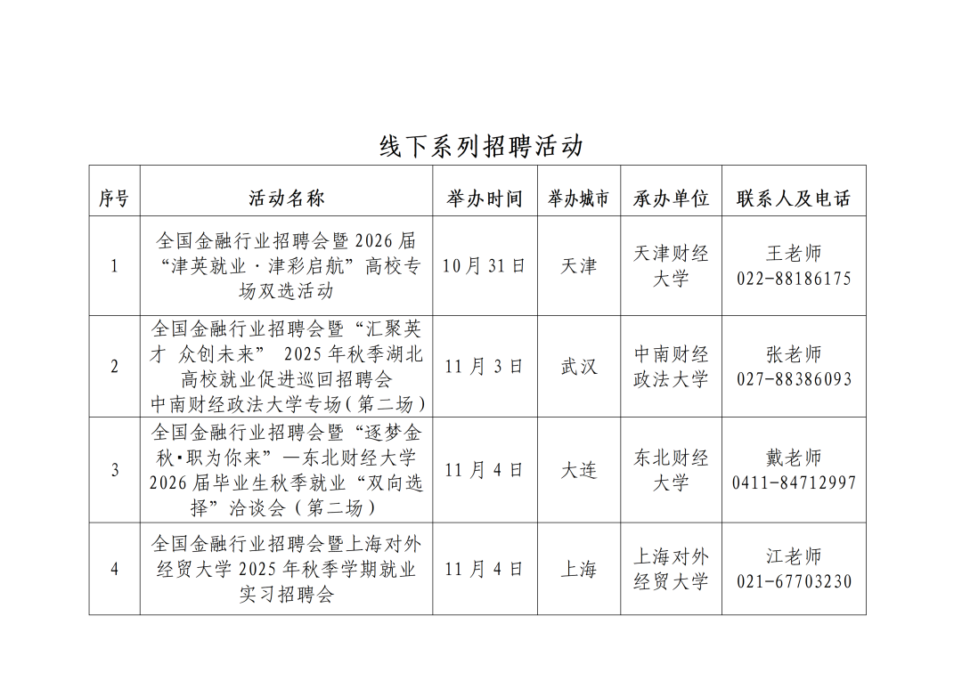 全国金融行业面向2026届高校毕业生秋季招聘活动