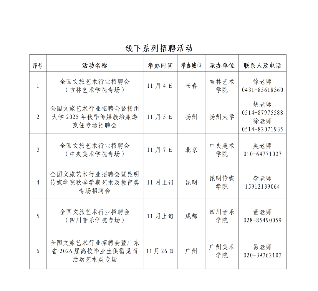 全国文旅艺术行业面向2026届高校毕业生秋季招聘活动