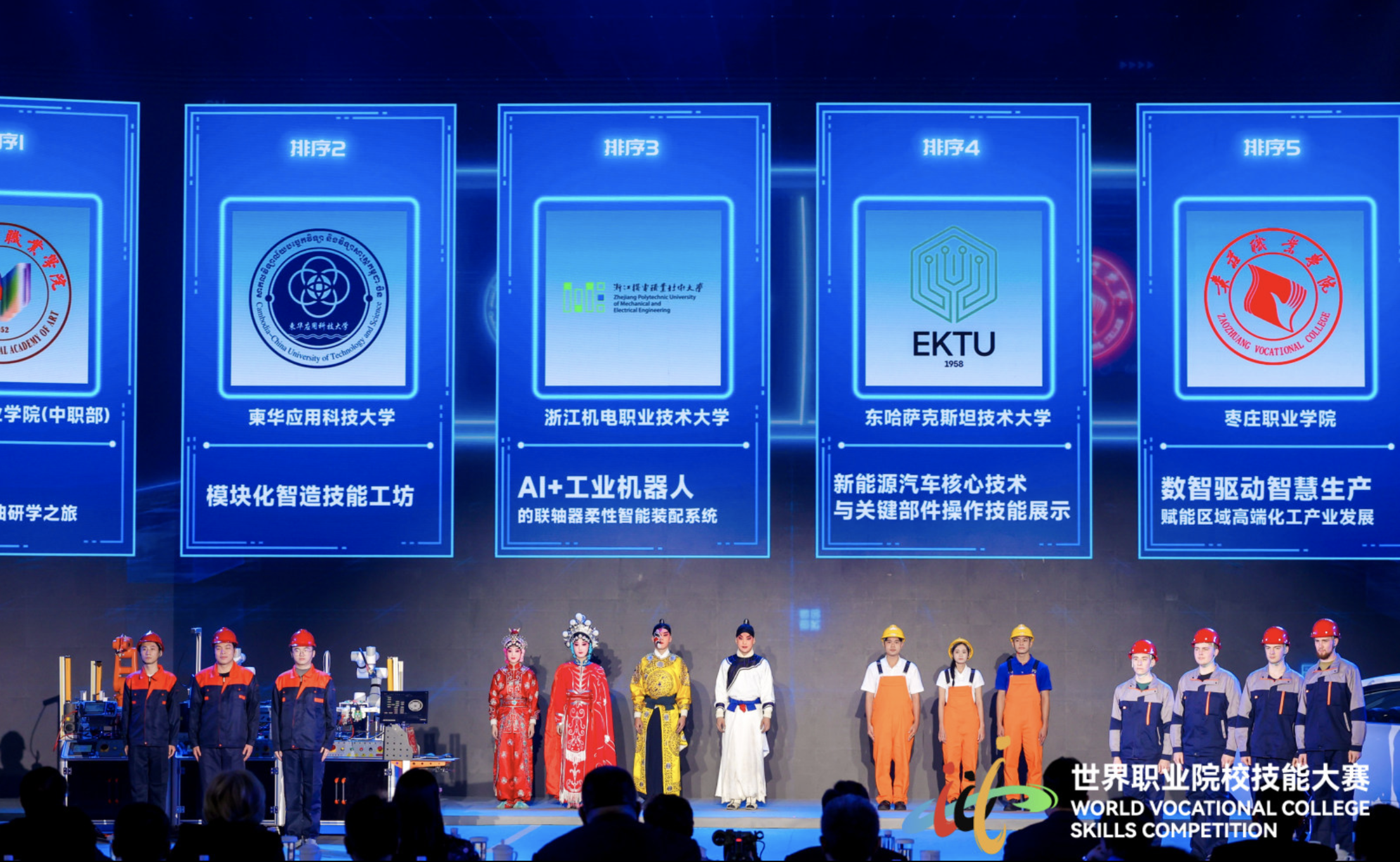 金华职业技术大学“家门口的守护:糖尿病并发症的社区精准防治”项目参赛队获得冠军,浙江机电职业技术大学“AI+工业机器人的联轴器柔性智能装配系统”项目参赛队、枣庄职业学院“数智驱动智慧生产赋能区域高端化工产业发展”项目参赛队获得亚军,陕西艺术职业学院(中职部)“秦风新韵——秦腔少年的戏曲研学之旅”项目参赛队、东哈萨克斯坦技术大学“新能源汽车核心技术与关键部件”项目参赛队、柬华应用科技大学“模块化智造技能工坊”项目参赛队获得季军。