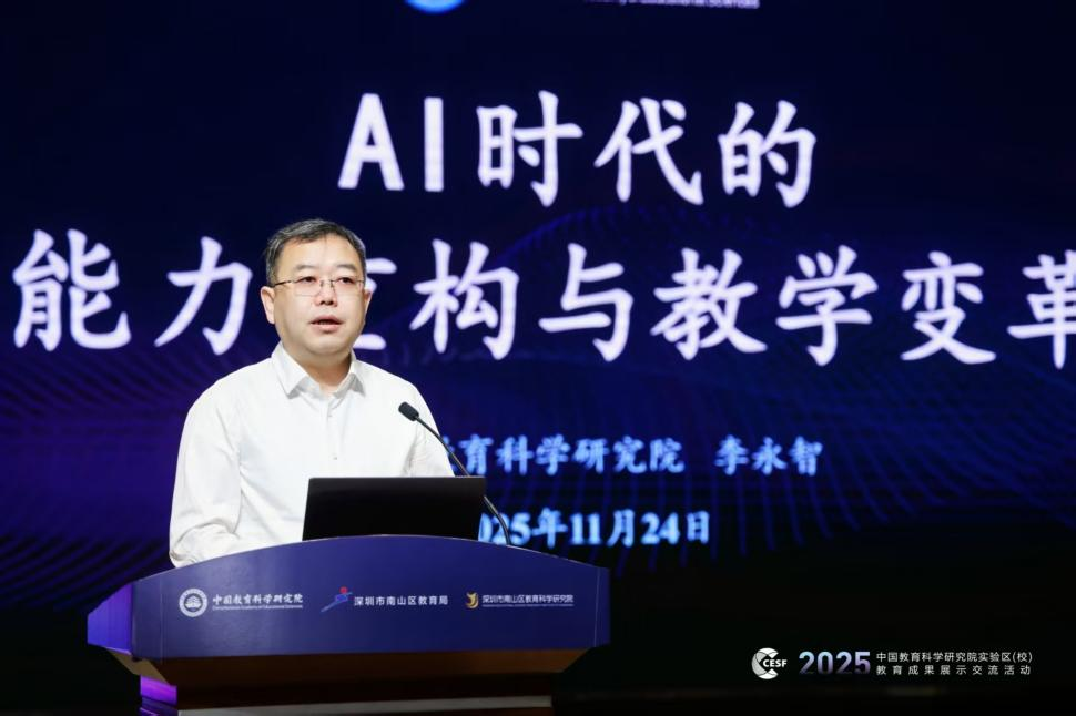 11月24日,以“人工智能时代的能力重构与教学变革”为主题的“2025年中国教育科学研究院实验区(校)教育成果展示交流活动”在深圳市南山区举办。