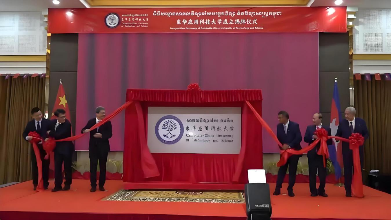 图为柬华应用科技大学成立揭牌仪式