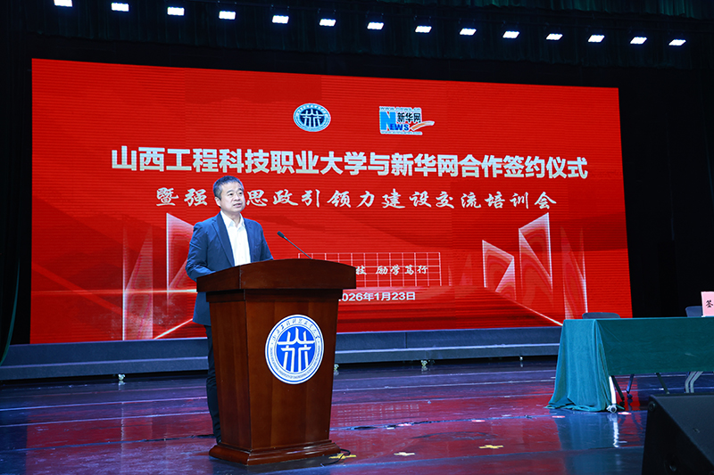 秦华伟在致辞中表示,校媒携手共建“大思政”协同育人中心,是双方优势互补、共谋发展的战略选择,不仅是学校深化思想政治教育改革的重大突破,更是我们回应时代需求、深化育人改革的主动担当。山西工程科技职业大学将以此次签约为契机,紧紧围绕推进中国式现代化和教育强国建设的新要求,与新华网紧密协作,努力将协同育人中心建设成为集理论研究、实践创新、资源共享于一体的高水平思政育人平台,共同探索职业教育领域“大思政”建设的新范式,打造具有山西特色、职教特征、工科大气质的思政教育新名片。