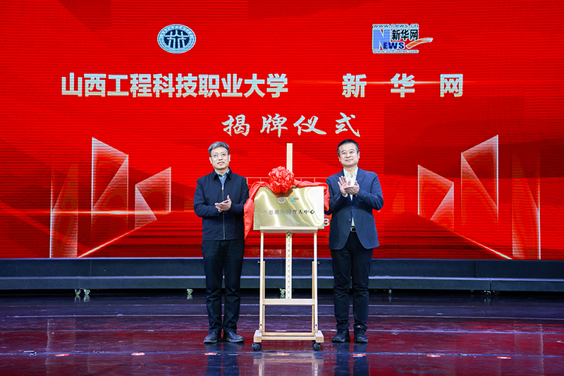 姚予疆和潘晋孝共同为“山西工程科技职业大学-新华网‘大思政’协同育人中心”揭牌。