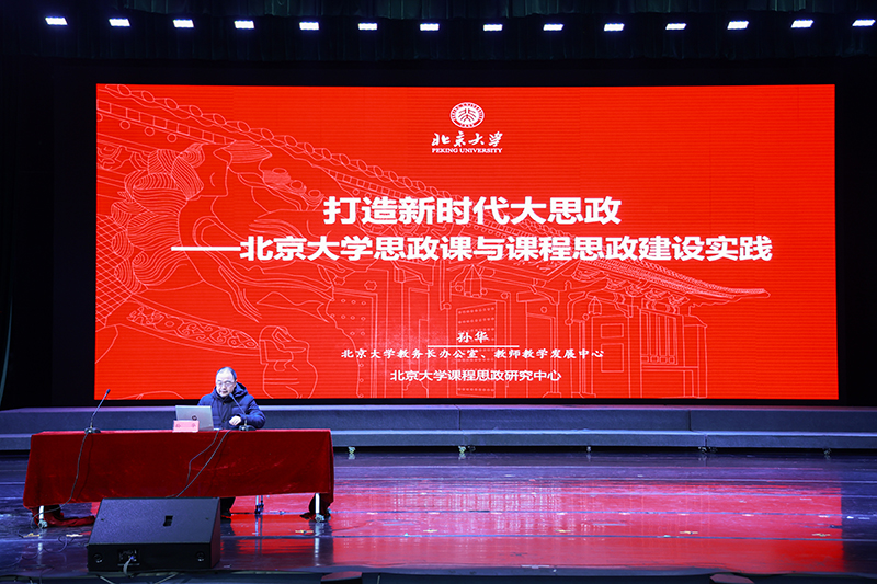 仪式结束后,北京大学教师教学发展中心主任孙华教授作专题授课。他以“打造新时代大思政——北京大学思政课与课程思政建设实践”为主题现场授课,详细介绍了教育部相关政策、学校和院系的实施方案、课程思政示范课程的教学实践,探讨如何在课程思政中发挥教和学的两个主体作用,在专业教学中总结、提升和凝练课程思政的经验等内容,为大家注入生动鲜活的思政教学科研前沿理念。来自全省的500余位教师参会,聆听了精彩分享。