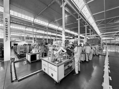 在唐山高新技术产业开发区产教联合体建设的机器人共享智能制造工厂中,唐山工业职业技术大学学生正在开展实践活动。资料图片