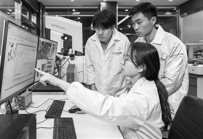 河北工业职业技术大学钢铁智能冶金技术专业教师指导学生进行硅钢组织检测与分析。资料图片