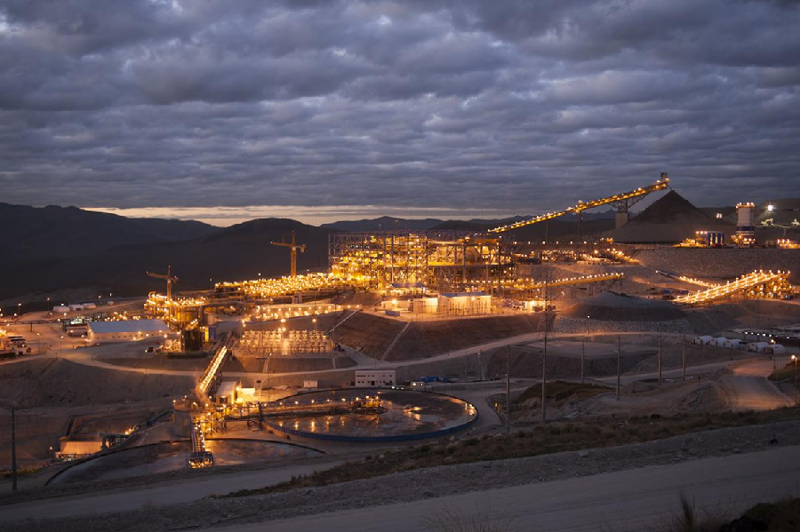 图为中国五矿位于秘鲁的邦巴斯铜矿选厂夜景(图片由中国五矿提供)