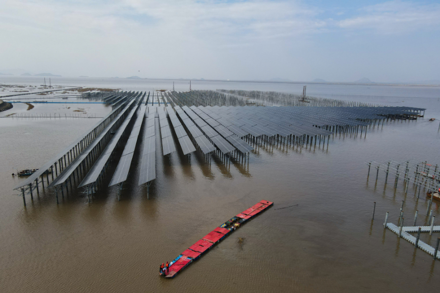 根据国家光伏产业建设规划,将大面积利用滩涂等利用率极低的荒地开展光伏电站建设工作。中国大唐紧握发展风向标,全力开发浙江区域大型滩涂光伏项目,促进节能减排和经济社会可持续发展,助力“碳达峰、碳中和”目标实现。