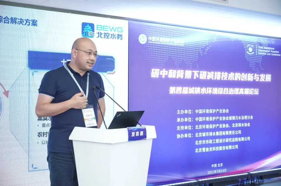 7月14日,北控水务集团副总裁冒建华出席第十九届中国国际环保展览会同期举行的高端论坛,并在“第四届城镇水环境综合治理高端论坛——碳中和背景下碳减排技术的创新与发展”主环节中,作《村镇污水工程的全流程产品化实现与集约化减污降碳协同》的主题发言,系统阐述北控水务村镇污水治理的新理念和新模式。