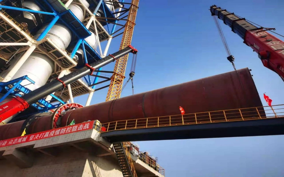 然而,就在2021年开年铜川项目建设进入实质性攻坚阶段的关键时刻,石家庄发生了疫情,给项目人员调集、设备运输都带来许多预想不到的困难和问题。春节期间,坚守一线的技术人员和施工队伍仅用时5天就“一气呵成”完成了窑筒体的吊装作业工作。