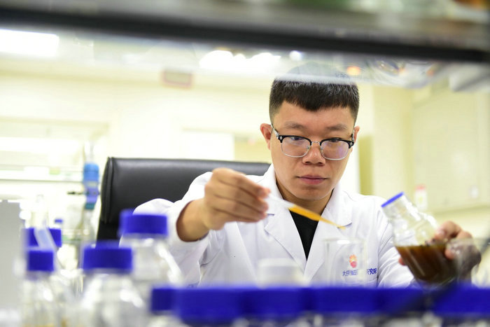 大庆油田勘探开发研究院科研人员在进行驱油实验 王赫楠摄