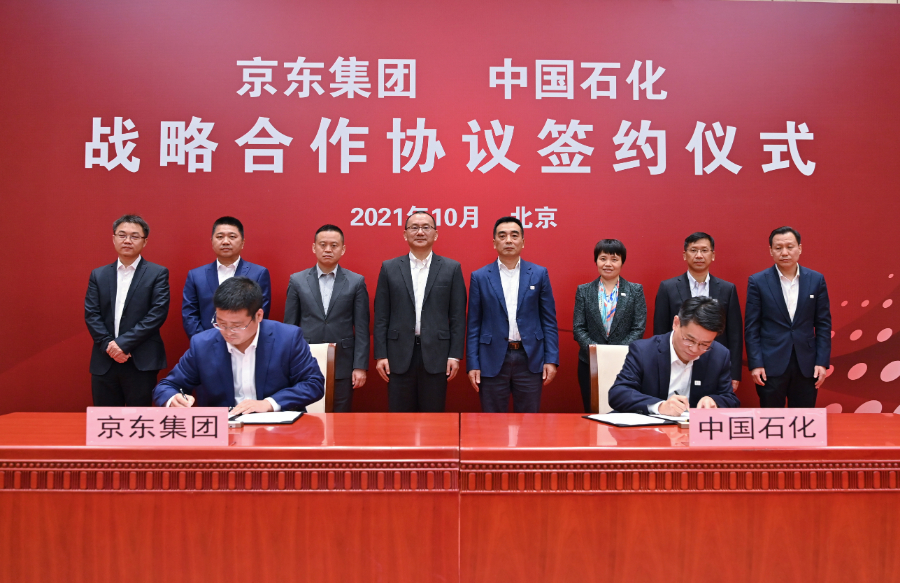 10月29日,中国石化销售股份有限公司与京东集团在北京签署战略合作协议,全面深化长期合作关系,推动资源共建共享、助力美好生活。按照协议,双方将通过品牌、会员、营销等资源的共享与运用,在能源供应服务,以及商品、物流、数智等供应链方面开展更深度的合作,努力为客户、为社会提供更加高品质的全方位服务。