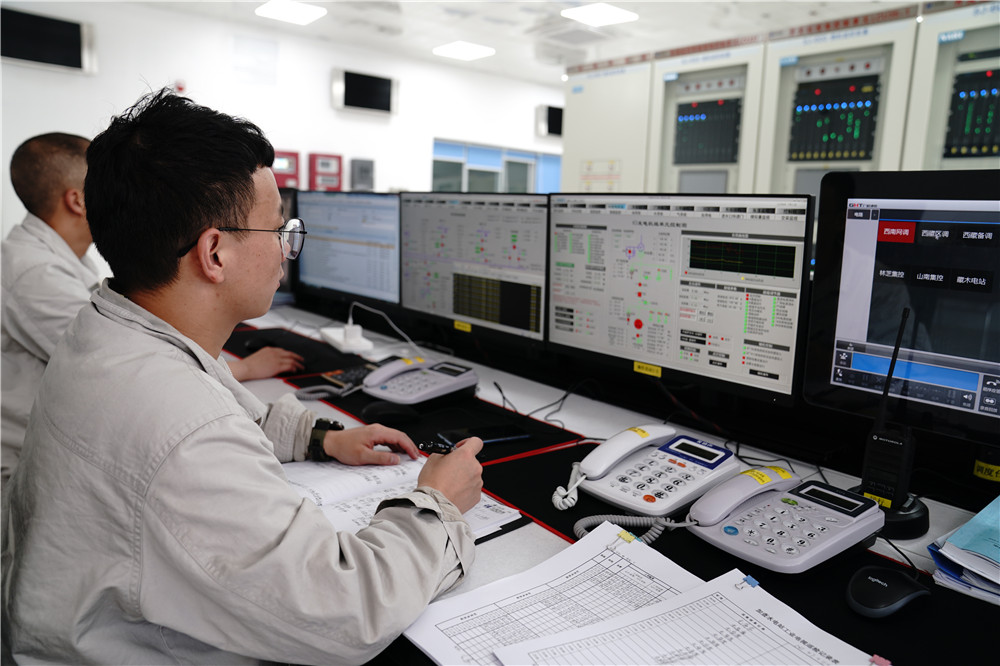 2021年7月11日,华能雅江公司员工正在西藏加查水电厂调度室值班。新华社记者 刘洪明 摄
