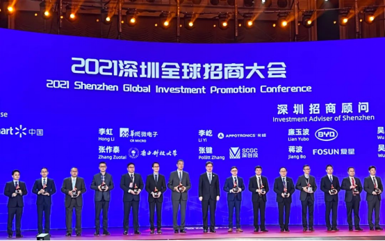12月15日,由深圳市人民政府主办,深圳市商务局、深圳市政府新闻办、深圳市政府外事办共同承办的2021深圳全球招商大会在深圳举行。港华集团高级副总裁林铭荣出席大会,并代表港华投资有限公司参加授牌仪式。同时,获得跨国公司总部企业认定的还有港华能源投资有限公司、港华综合电能投资(深圳)有限公司。
