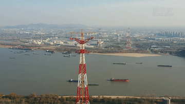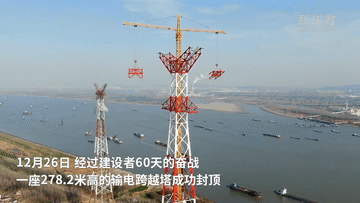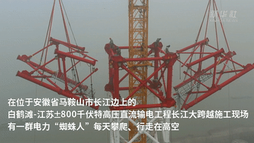 在位于安徽省马鞍山市长江边上的白鹤滩-江苏±800千伏特高压直流输电工程长江大跨越施工现场,有一群电力“蜘蛛人”每天攀爬、行走在高空。12月26日,经过建设者60天的奋战,一座278.2米高的输电跨越塔成功封顶。
