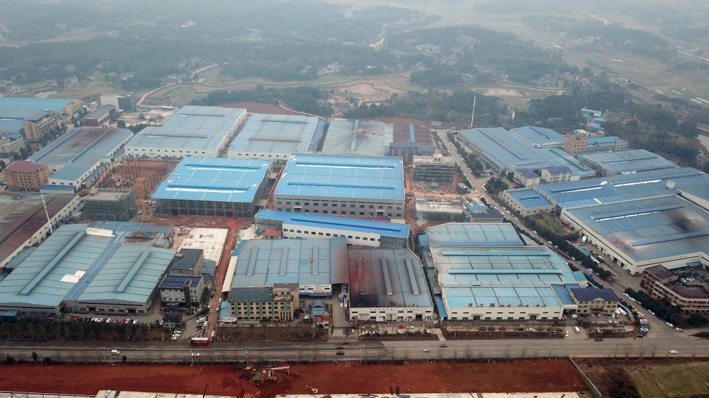这是2021年12月31日拍摄的煤炭坝镇部分门业企业(无人机照片)。(新华社记者陈振海 摄)