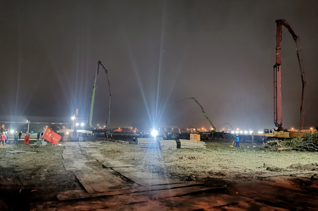 各参建单位全力整合资源、调配力量,尽锐出战。截至4月13日,现场已进驻700多名管理和作业人员;已进场机械挖机18台、推土机9台、压路机4台;目前已完成土地平整7.5万平方米,混凝土地坪浇筑超5万平方米。除工程建设物资外,紧急采购盥洗设备、插座、呼叫系统、床、柜、床上用品超7500套,完成安装集装箱100间,为保障项目建设奠定坚实基础。