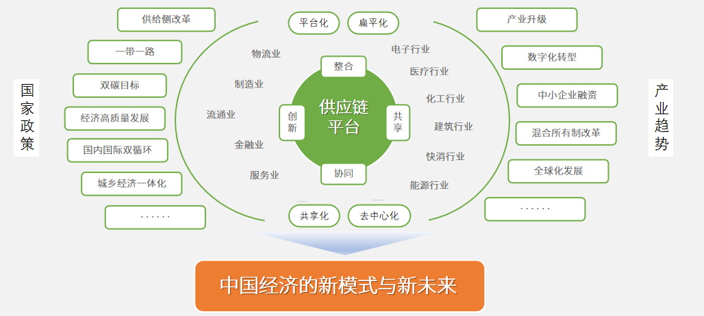 流通消费端整合散乱穷小的市场资源要素形成全国直供的大市场体系要靠供应链平台,生产供应端过剩与失衡的供给侧结构性改革业也要靠供应链平台。