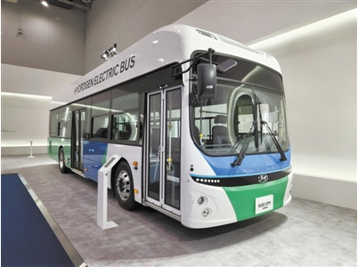 第28届世界燃气大会在韩国大邱举行。世界燃气大会是全球天然气行业最大规模的定期会议,每3年召开一次。图为世界燃气大会上展示的韩国氢能公交车。记者 薛严摄