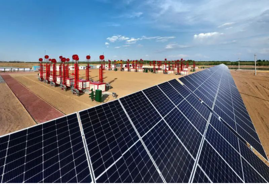 在吉林,吉林油田光伏发电项目已在红岗、新立、长春等矿区全面开工,百余名建设工人穿梭在建设现场,一块块光伏板安装就绪,实现全部风光发电并网指日可待。其中,70万千瓦风光发电项目正加快推进,现已建设完成场站光伏3000千瓦,并实现提前并网发电,日间满发期间可带动600台抽油机运行。