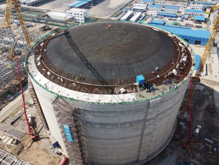 图片说明:天津LNG二期8号储罐,目前穹顶首层正在进行混凝土浇筑。