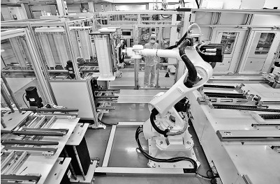 光伏产业是河北省宁晋县的特色产业。近年来,宁晋县光伏企业加大科技创新投入,建设智能工厂,促进光伏产业快速发展。目前,宁晋县已形成硅片、电池、组件等光伏产业链,光伏产品畅销国内外。图为7月2日,在晶澳太阳能有限公司,机械手在搬运电池片。新华社发(田晓丽摄)
