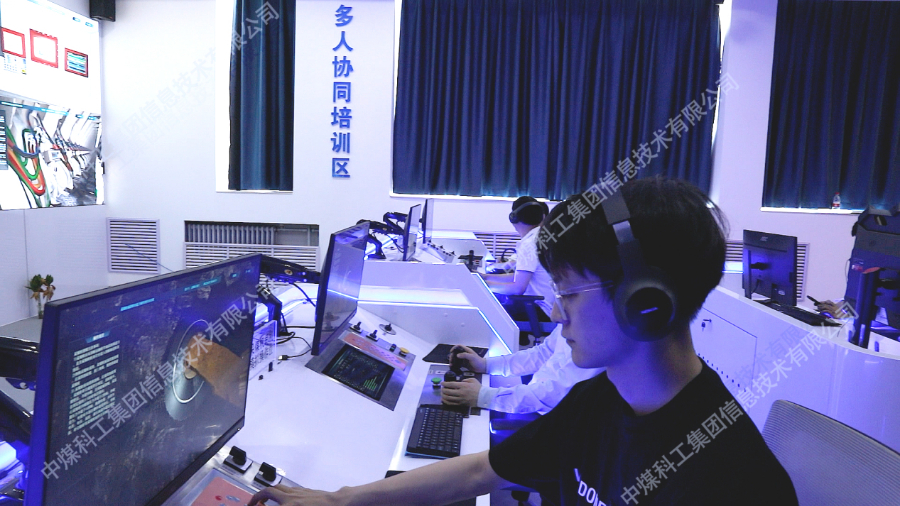 综采工作面多人协同培训系统:配置综采工作面全岗位模拟驾驶操作台,结合第一人称视角沉浸式立体式三维井下场景,实现人机物环三维可视化动态显示。各岗位学员通过强联网协同实操演练,交互式训练岗位标准作业流程,以及处理作业过程中随机突发的设备故障、环境异常等情况,通过灵活多变、自主探究、实践体验的培训方式使学员快速准确掌握人机环及各工种之间的协同关系,以实现技能和安全操作目的;同时通过智能考核模块,系统以标准化作业流程为基准自动对学员的操作进行智能评分,达到培训实时结果化的目的;