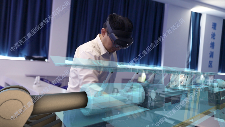 MR采煤设备检修培训系统:学员通过混合现实头戴式设备,通过实时手势、语音、眼球追踪等多维交互方式,进行煤矿主要设备的检修标准作业流程学习,通过所见即所得的专家知识库引导式智能作业指导,赋能煤矿员工快速掌握检修工艺和检修方法,提高设备检修效率。