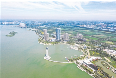 近年来,江苏省常州市武进区以绿色环保低碳发展为理念,积极推进绿色城区示范区建设,打造城市建设与生态文明相融合的新城区。图为武进区西太湖(滆湖)揽月湾景区。 新华社记者 杨磊摄