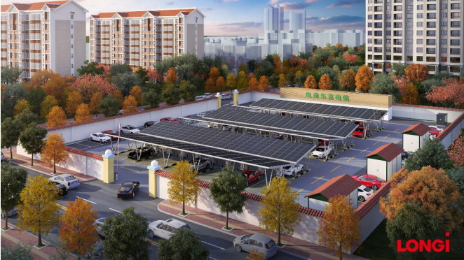 隆基隆行是集光储充管一体,具有遮阳避雨,稳定发电,高效利用空间,智能调配电力、安装便捷等优点,针对不同地域气候特点还可采用铝合金、碳钢等不同类型方案,可在高速服务区、火车站、枢纽站等停车场地规模化应用。