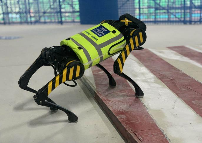 一台能跑能跳的智能机器狗吸引了众多目光。这是中建电子自主研发的智能巡检机器人,它可在施工现场完成定期巡检作业。通过边缘分析模块摄像头搭建5G网络平台,实现避障作业和危险源分析,相比于人类目测巡检,更加精准可靠。