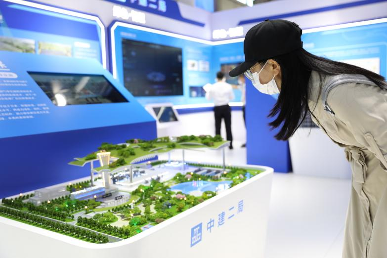 漫步展区,可感、可看、可研,游客通过大屏、沙盘和实体模型,沉浸式体验一场绿色建造、智慧建造、数字建造之旅。